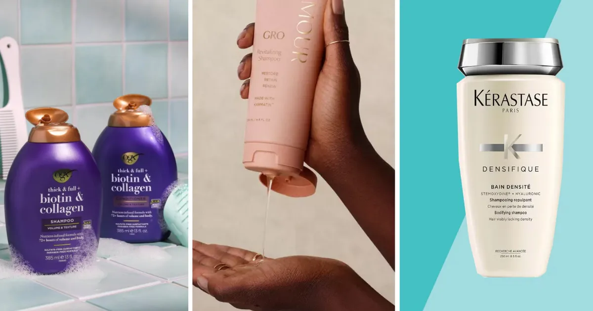 A gentle, sulfate free formula with strengthening ingredients works best for daily routines. Try Virtue Flourish Shampoo for Thinning Hair.